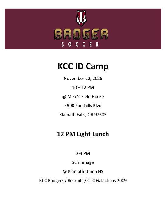 The KCC Badgers Soccer ID camp is Nov. 22. If interested in trying out for men's soccer,